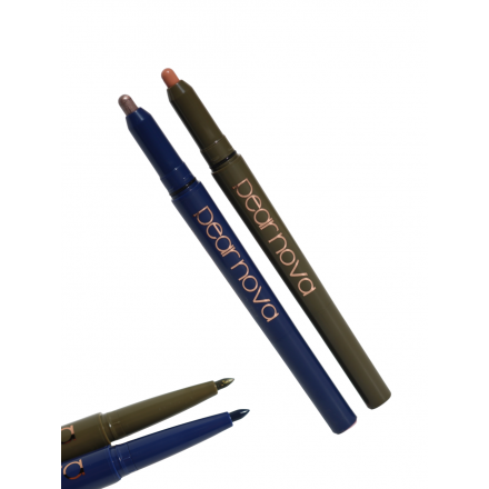Bộ bút màu mắt PEAR NOVA Eye Duo Stri k Shadow + Liner  gồm 2 cây (Azurite có bút màu nâu nhạt, kẻ mắt màu xanh navy và Unakit có bút màu nude và kẻ mắt màu xanh rêu) có thể tán đều, dễ tán và mịn như nhung.