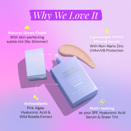 Tinh chất chống nắng làm sáng sa Naked Sundays CabanaGlow™ SPF50 Mineral Glow Serum Drops chứa đầy sắc tố làm sáng da và các chiết xuất làm đẹp siêu mạnh. Giúp dưỡng ẩm, làm sáng và đều màu da. Trộn với Bronze để có làn da rám nắng khỏe mạnh, vàng óng trong kỳ nghỉ hoặc dùng riêng để có làn da rạng rỡ.